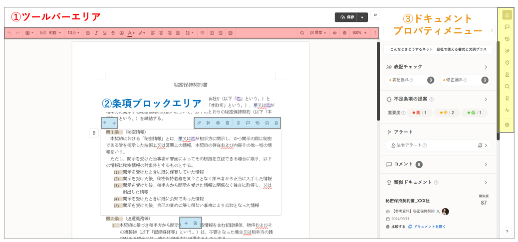 条項ブロックには、条項の移動や分割、新規条項ブロックの追加等の機能が集約されています。