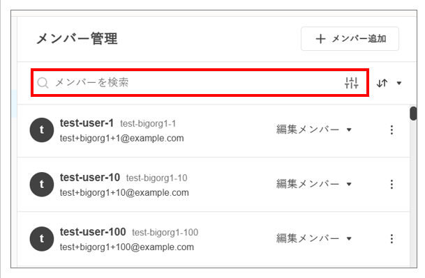 メンバー名やメールアドレスを入力して検索をかけることができます。