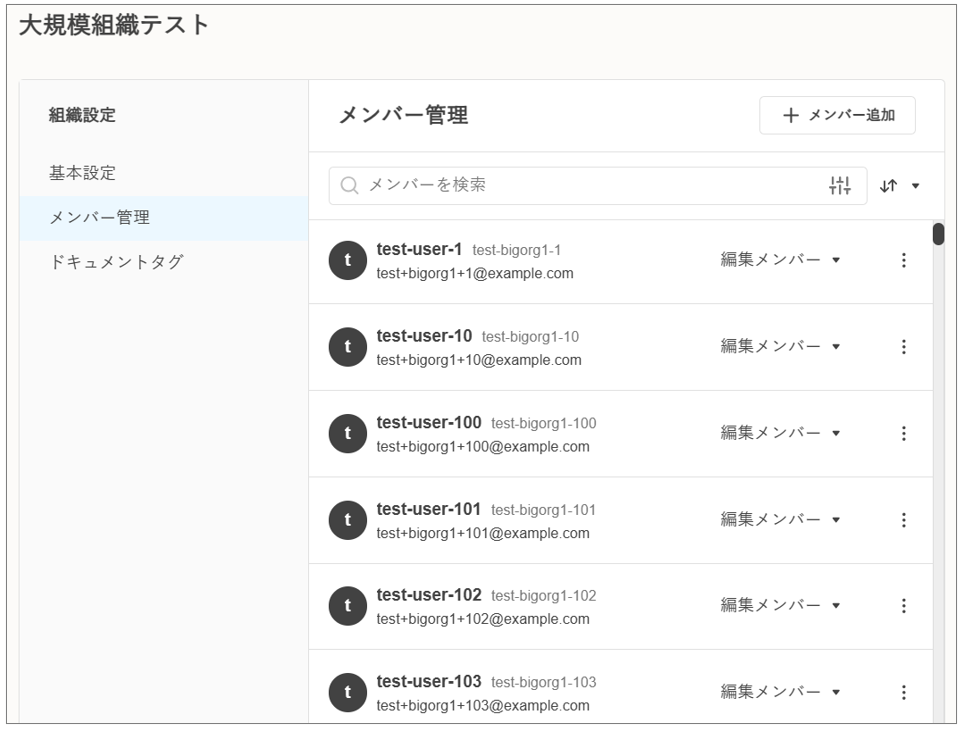 なお、メンバー管理画面は組織管理者権限を持つユーザーにのみ表示されます。