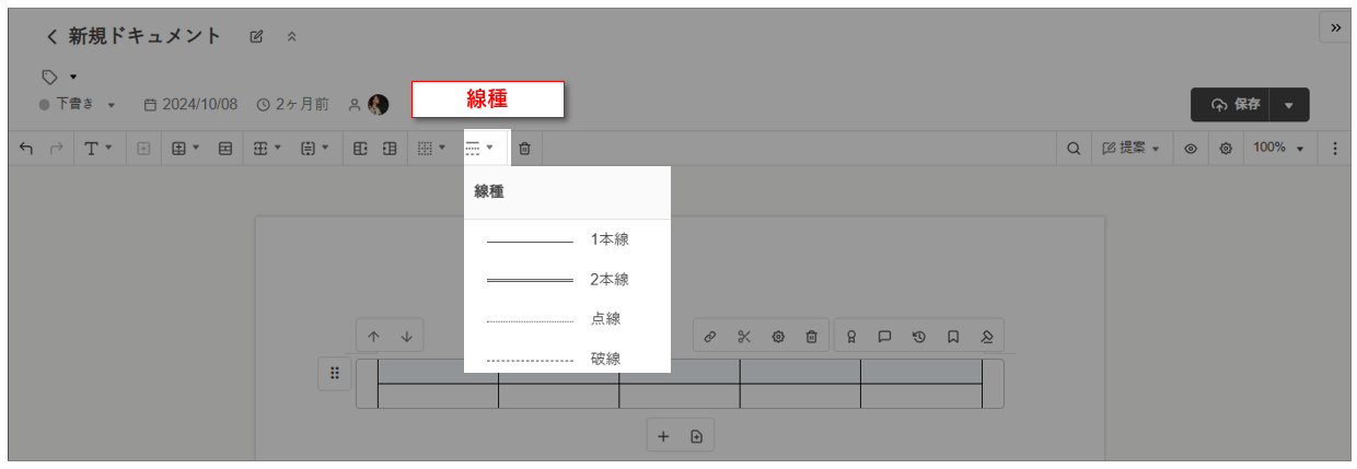 選択したセルに対して、線種を選べます。